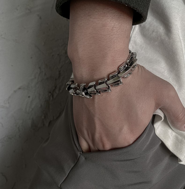 Homme personnalité dominant quille bracelet de mode ins niche design haut de gamme sens punk tendance ne perd pas de couleur accessoires